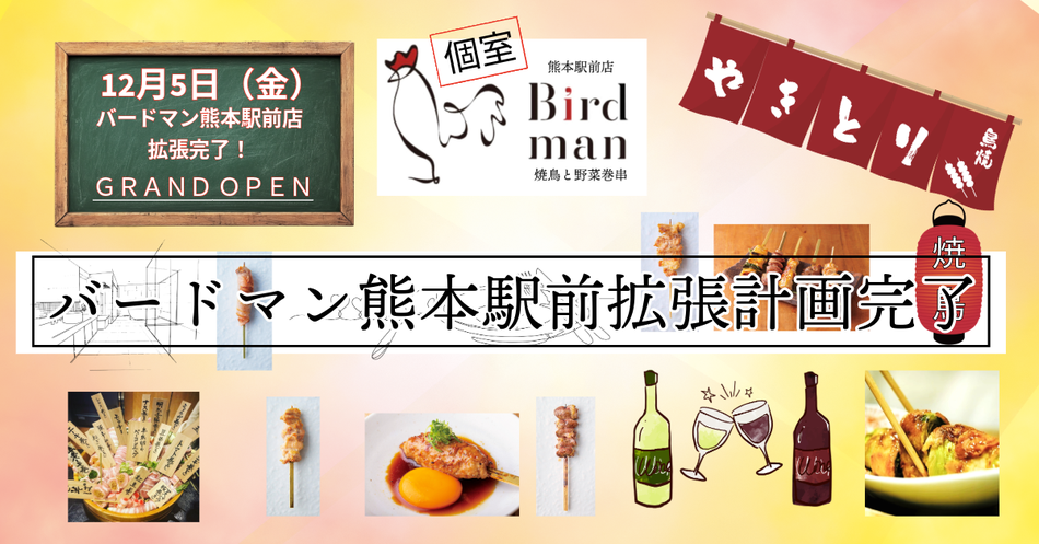 バードマン熊本駅前店 12月5日拡張リニューアルオープン!