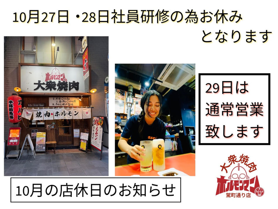 10月27日~28日(月~火)が社内研修の為お休みとなります。