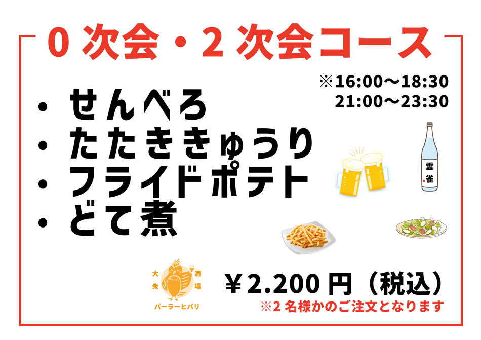 ☆お得な0次会・2次会専用特別メニュー出来ました!